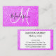 This chic, girly and glam business card has a lilac purple glitter sparkles background on both sides. On the front of the business card is your first name in an elegant black script with a large monogram initial in white behind it. Then on the back is your name, job title and contact details with a white background. Easily personalise this business card. Click "customise further" to change the text colour and font style and size. This business card is perfect for a makeup artist, hairstylist, beauty consultant, events planner or salon owner.