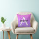 Girly and glam ombre purple glitter sparkles monogram name and initial throw pillow. Personalise with your custom name in black and your monogram initial in white. You can change the text colour and font style and size using the customise option.