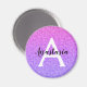 Girly and glam ombre purple glitter sparkles monogram name and initial magnet. Personalise with your custom name in black and your monogram initial in white. You can change the text colour and font style and size using the customise option.