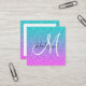 Girly Glam Pink Blue Purple Glitter Ombre Monogram Square Business Card