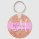 Girly Glam Pink Peach Gold Glitter Monogram Name Key Ring