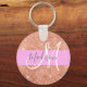 Glam and girly pink, peach, gold glitter sparkles white monogram name and initial keychain. Your custom name and monogram are written in an elegant hand lettered script with a pink background. You can change the text color and font style and size using the customize option. A perfect birthday or Christmas gift!