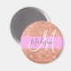 Glam and girly pink, peach, gold glitter sparkles white monogram name and initial magnet. Your custom name and monogram are written in an elegant hand lettered script with a pink background. You can change the text color and font style and size using the customize option. A perfect birthday or Christmas gift!