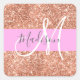 Girly Glam Pink Peach Gold Glitter Monogram Name Square Sticker
