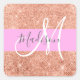 Girly Glam Pink Peach Gold Glitter Monogram Name Square Sticker