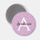 Girly and glam purple glitter sparkles monogram name and initial magnet. Personalise with your custom name in black and your monogram initial in white. You can change the text colour and font style and size using the customise option.