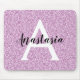 Girly and glam purple glitter sparkles monogram name and initial mouse pad. Personalise with your custom name in black and your monogram initial in white. You can change the text colour and font style and size using the customise option.