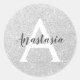 Girly Glam Silver Glitter Sparkles Monogram Name Classic Round Sticker