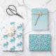 Girly Glitz Aqua Turquoise Glitter Unicorn Wrapping Paper Sheet