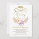 Girly Gold Crown Elegant Pink Floral Baby Shower Invitation