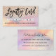 This is the perfect Loyalty Discount Card for a trendy, stylish, and modern business. This design features chic, girly, and pretty black brushstroke typography on a glamourous and girly faux printed gold glitter with pink, peach, blue, and purple iridescent holographic ombre gradient background. These cards will add that personal and professional touch to your business and career advertisement.