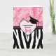 A girly graduation congratulations card with a cute pink and black background of a trendy zebra print on the bottom and a pink paisley style floral pattern on the top. Written in the centre of a heart with a graduation cap is: Congratulations Graduate.