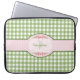 Girly Green Gingham Monogram With Name Laptop Sleeve
