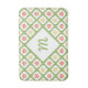 A girly quatrefoil pattern bathmat in greenery green and white and decorated with cute yellow and orange retro daisy flowers. Personalise for the special girl in your life by adding her monogrammed initial to the diamond-shaped badge.