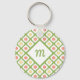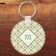 Girly Green Quatrefoil Cute Daisies and Monogram Key Ring