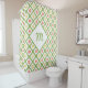 Girly Green Quatrefoil Cute Daisies and Monogram Shower Curtain