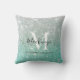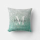 Girly Green Silver Ombre Glitter Monogram Name Throw Pillow
