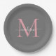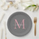 Simple Modern Trendy Grey Blush Pink Monogram Modern Feminine Script Name Paper Plate