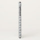 A girly light grey quatrefoil patterned Barely There iPhone X Case with a scalloped badge in a pinkish lavender that you can personalise by adding your name and monogrammed initial to. This is part of the Harbour Mist Grey and Lavender Pink Spring Collection.