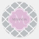 Girly light grey quatrefoil patterned stickers with a scalloped badge in a pinkish lavender that you can personalise by adding your name and monogrammed initial to. This is part of the Harbour Mist Grey and Lavender Pink Spring Collection.