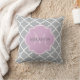 Girly Grey Quatrefoil Lavender Monogram and Name Cushion