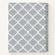 A girly light grey quatrefoil patterned standard size notebook with a scalloped badge in a pinkish lavender that you can personalise by adding your name and monogrammed initial to. This is part of the Harbour Mist Grey and Lavender Pink Spring Collection.