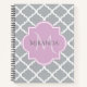 Girly Grey Quatrefoil Lavender Monogram and Name Notebook