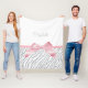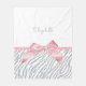 A trendy grey tiger stripes pattern fleece blanket embellished with a picture of a girly pink satin bow. Personalise by adding the name of your favourite girl. Flat printed image, NOT affixed with an actual ribbon.