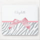 A trendy grey tiger stripes pattern mousepad embellished with a picture of a girly pink satin bow. Personalise by adding the name of your favourite girl. Flat printed image, NOT affixed with an actual ribbon.