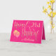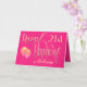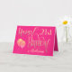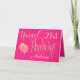 Elegant girly colours of ornate typography in gold on a hot pink background for a 21st birthday. Happy Birthday is set in a decorative script, and the age is in a cordinating typeface with name in elegant script at the bottom. Easily personalise the name and message inside to your own greeting if you wish. Faux sparkly balloons add razzle dazzle on the front! The same colour hot pink background continues on the inside.