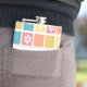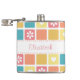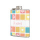 A girly square tile pattern flask with modern style rounded corners in pretty spring colours, decorated with cute hearts and retro daisy flowers. Personalise by adding the name of any girlie girl to this retro mod accessory in shades of coral pink goldenrod yellow, and turquoise blue. Original Art copyright of ©OhSoGirly