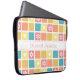 A girly square pattern 15 inch Laptop Sleeve with modern style rounded corners in pretty spring colors, decorated with cute hearts and retro daisy flowers. Personalize by adding the name of any girlie girl to this retro mod case in shades of coral pink goldenrod yellow, and turquoise blue. Original Art copyright of ©OhSoGirly