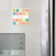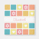 A girly square pattern magnet with modern style rounded corners in pretty spring colors, decorated with cute hearts and retro daisy flowers. Personalize by adding the name of any girlie girl to this retro mod design in shades of coral pink goldenrod yellow, and turquoise blue. Original Art copyright of ©OhSoGirly