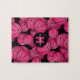 This pink and black girls' basketball jigsaw puzzle features a pattern of varied size hot pink basketballs on a black background - customise with basketball player's name and monogram - by katz_d_zynes