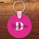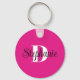 Girly Hot Pink Black and White Modern Monogram Key Ring