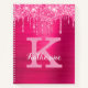 Girly Hot Pink Glitter Drips Cool Monogram Name Notebook