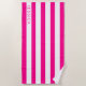 Girly Hot Pink White Cabana Strip Personalised Beach Towel