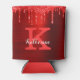 Girly Hot Ruby Red Glitter Drips Monogram Name Can Cooler