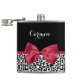 Personalise by adding the name of any girly girl to this girly black and white leopard print 6 oz. flask with an cute bright red ribbon tied into a stylish bow. This fashionable animal print design is a flat printed image, and does not contain actual ribbon.
