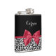 Girly Leopard Print Bright Red Ribbon With Name Hip Flask