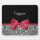 Girly Leopard Print Bright Red Ribbon With Name Mouse Mat