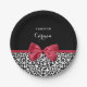 Girly Leopard Print Bright Red Ribbon With Name Paper Plate