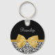 Girly Leopard Print Chic Gold Bow With Name Key Ring