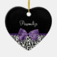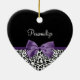 Any girly girl would love to have her name personalised on this girly black and white leopard print heart-shaped ornament with a pretty purple ribbon tied into a cute bow. This trendy animal print design is sure to bring out the fashionista in you. Flat printed image, not actual ribbon.