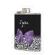 Girly Leopard Print Pretty Purple Ribbon With Name Hip Flask