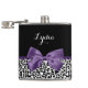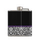 Any girly girl would love to have her name personalised on this girly black and white leopard print 6 oz. flask with a pretty purple ribbon tied into a cute bow. This trendy animal print design is sure to bring out the fashionista in you. Flat printed image, not actual ribbon.
