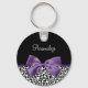 Any girly girl would love to have her name personalised on this girly black and white leopard print keychain with a pretty purple ribbon tied into a cute bow. This trendy animal print design is sure to bring out the fashionista in you. Flat printed image, not actual ribbon.