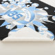 This fun girl's volleyball themed sherpa fleece blanket features an "explosion" of varied size light blue, grey and white volleyballs and blue, grey and white star shapes on a customisable black background - customise with athlete's name and jersey number - the blue and grey volleyball panels are blended with a girly floral kaleidoscopic pattern for a textured appearance - by katz_d_zynes