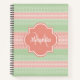 Girly Light Green Knit Coral Pink Stripes and Name Notebook