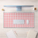 Girly Light Pink White Square Faux Tiles Pattern Desk Mat
